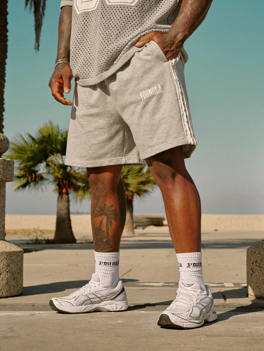 1058 - Vintage Striped Sweat Shorts | Heather Grey